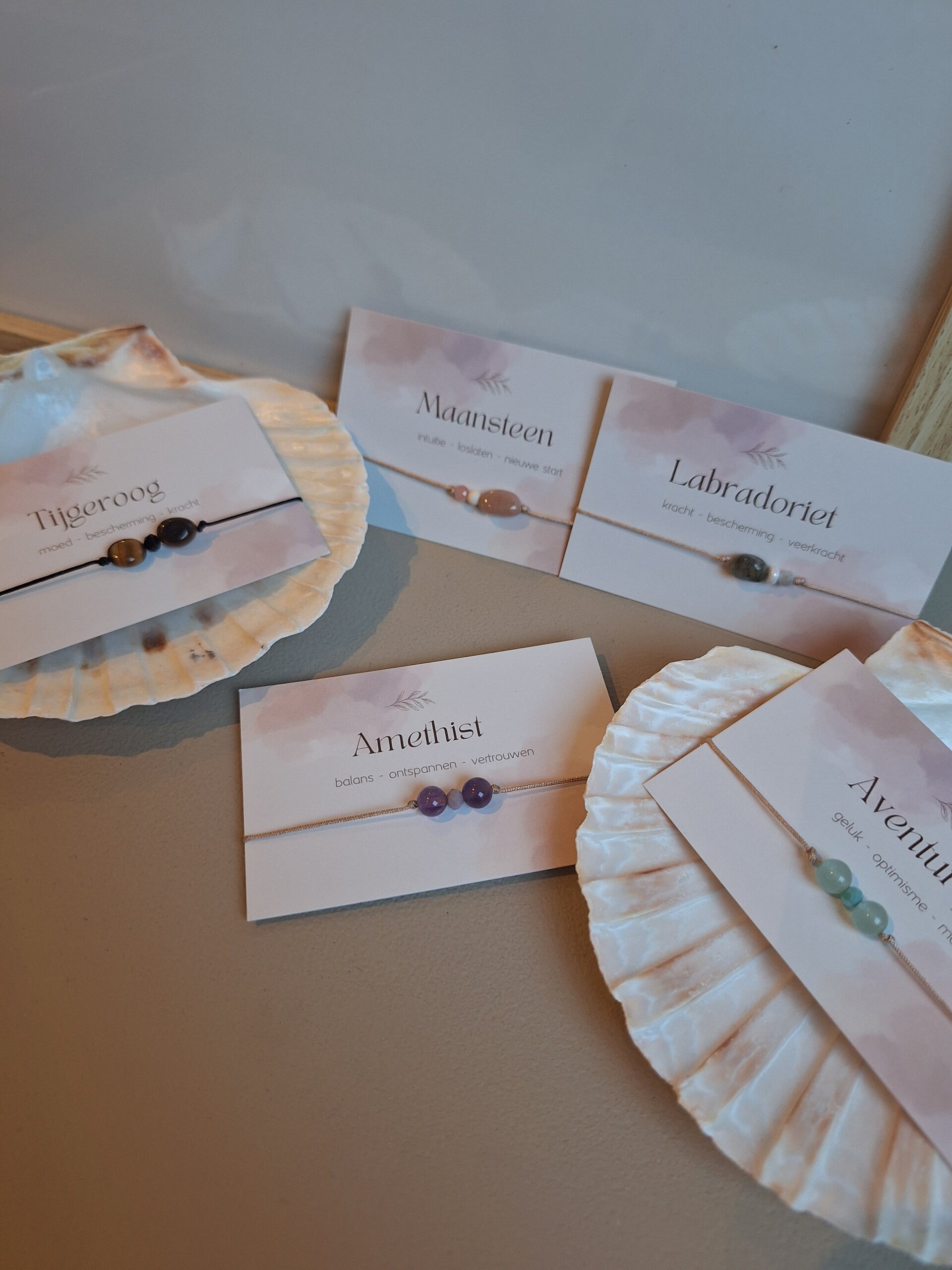 De armband is met zorg handgemaakt en voorzien van een schuifknoop, waardoor hij gemakkelijk verstelbaar is en altijd mooi aansluit. Een subtiel en elegant sieraad dat betekenis geeft aan elke dag.