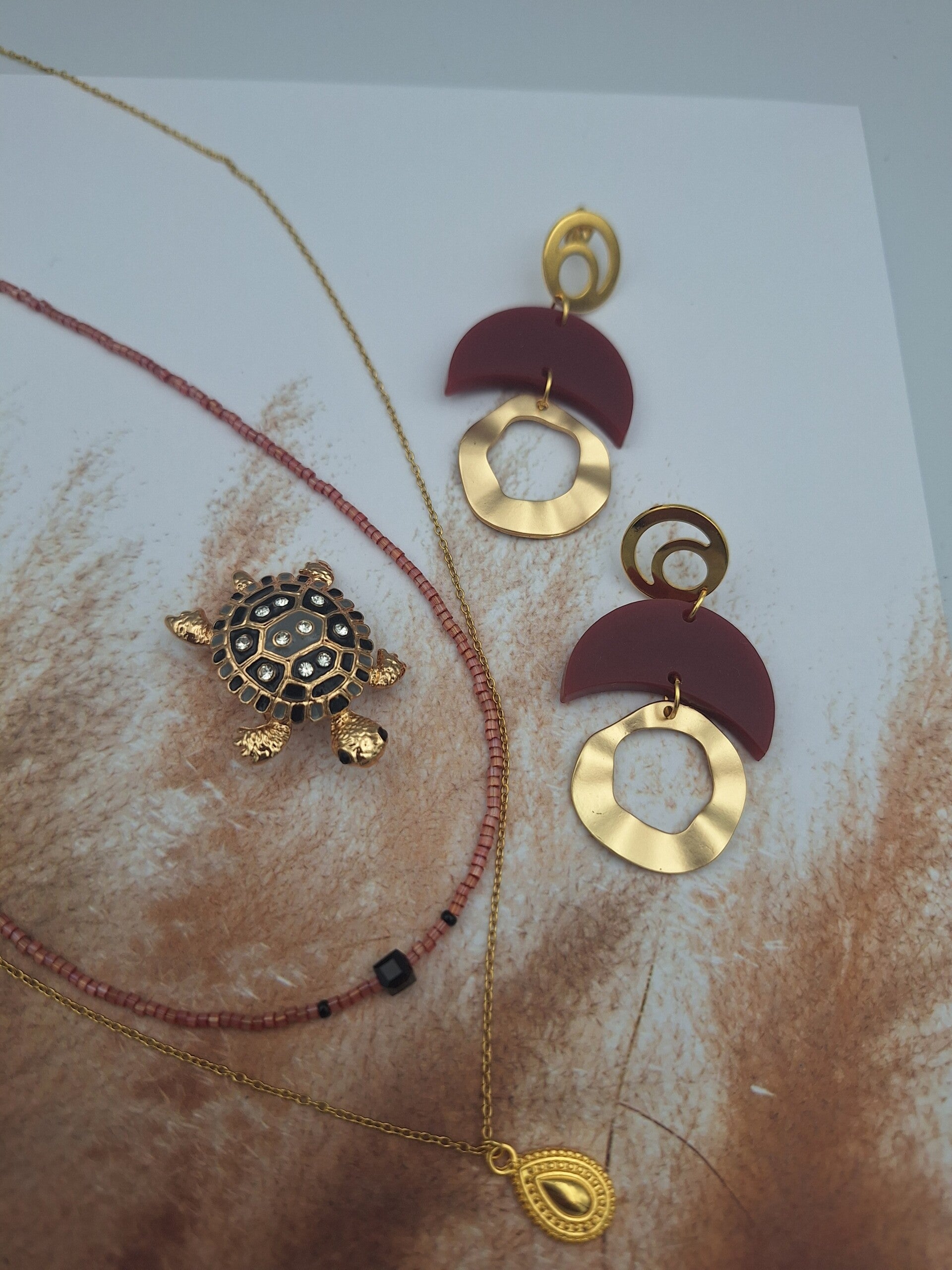 De diepe kleur burgundy / bordeaux rood maakt deze oorbellen dé eyecatcher van dit seizoen. Als een van de mooiste najaarskleuren van 2025 combineert deze warme tint prachtig met zowel basic als feestelijke outfits. Draag ze als finishing touch bij een zakelijke look, een casual outfit of een feestelijke avondjurk.