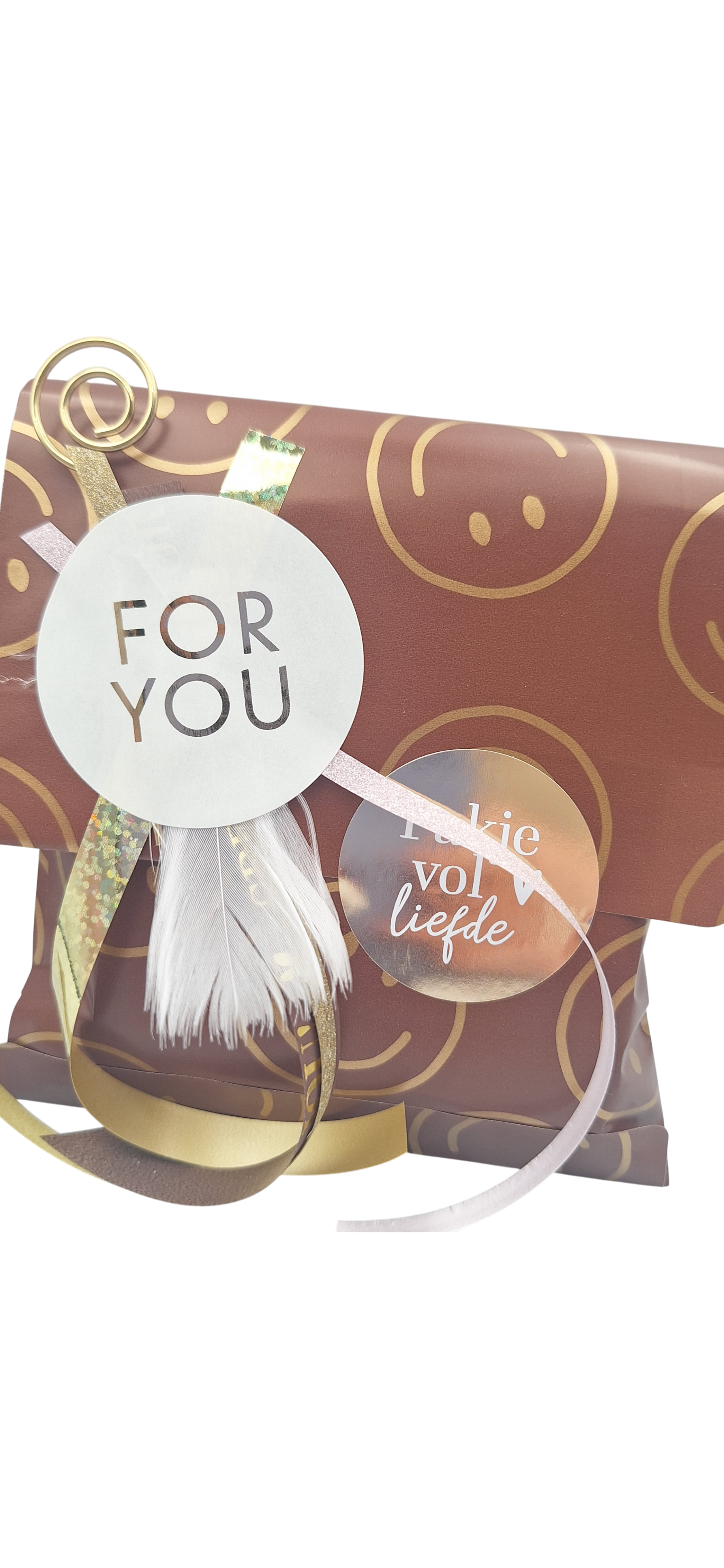 Voeg een persoonlijke touch toe aan elk cadeau met dit cadeaulint in bruin, voorzien van de gouden tekst Speciaal voor jou. Het stevige paperlook krullint laat zich mooi krullen en is perfect om een cadeauzakje aan te bevestigen. Geschikt voor uiteenlopende gelegenheden: van verjaardagen tot bedankjes.